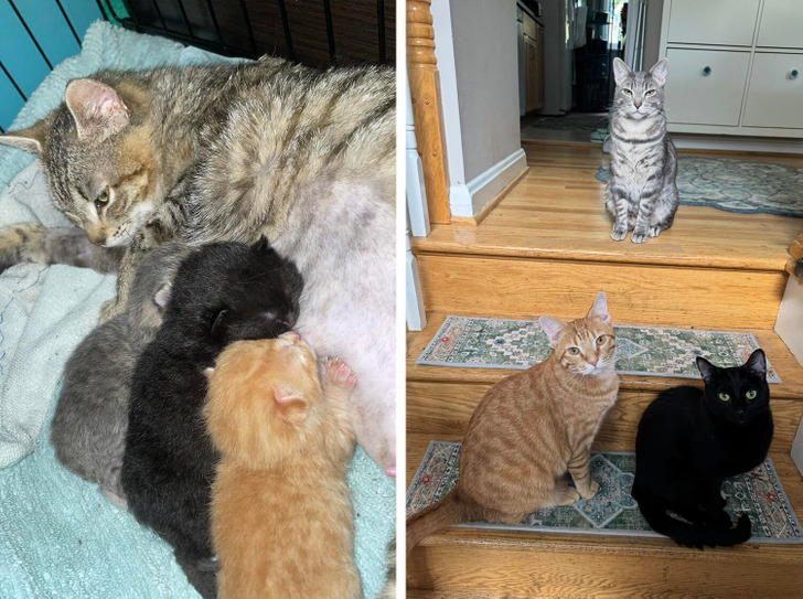 «Хани была бездомной кошкой, которую я подкармливала. Я забрала ее к себе, когда поняла, что она беременна. У нее родилось трое пушистых сорванцов и я оставила всех себе»