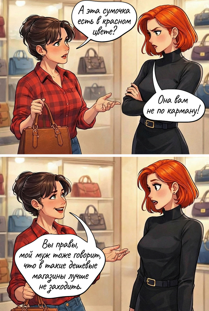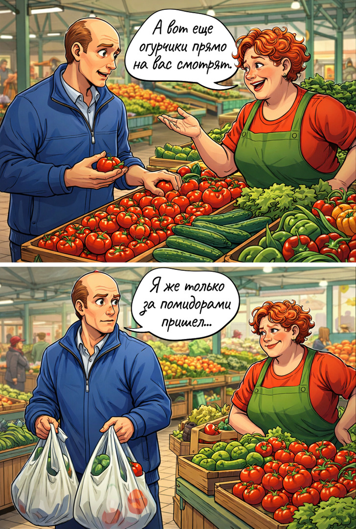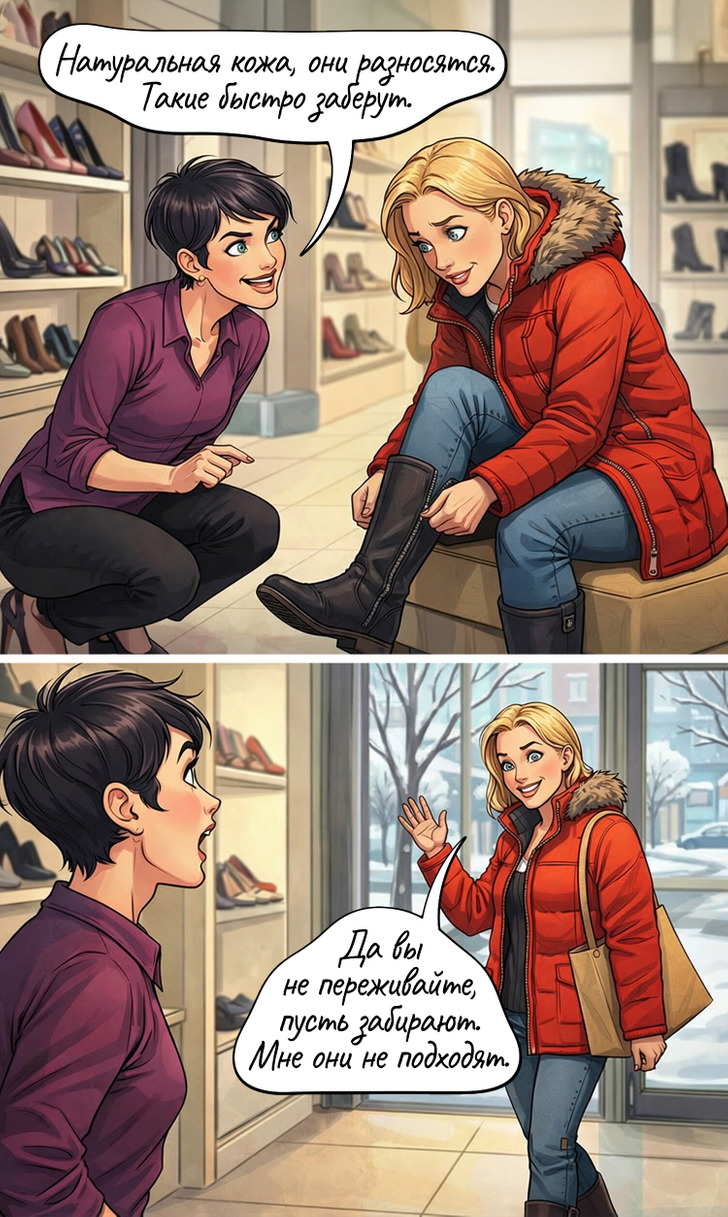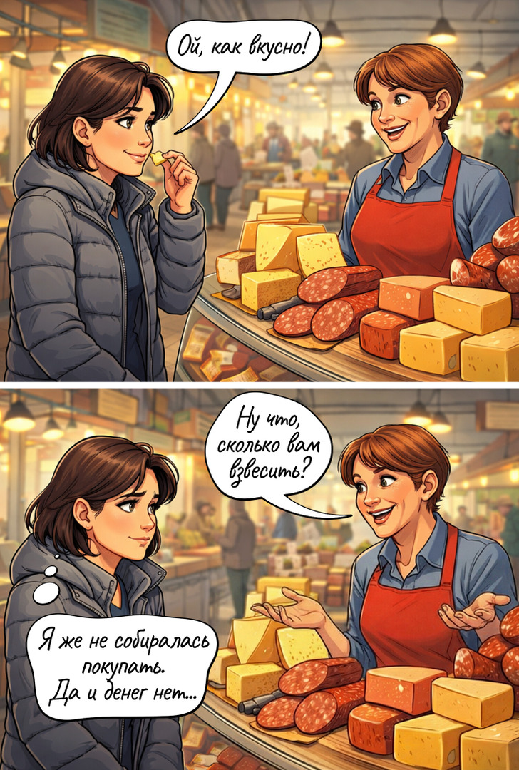 Каждый поход в магазин — это не просто покупка, а маленький диалог с продавцом. Конечно, часто что мы ограничиваемся сухим «здравствуйте, спасибо за помощь, до свидания», но порой в обувном бутике, магазине одежды или на рынке разыгрывается настоящий спектакль. То нас попытаются убедить, что сапоги-маломерки обязательно разносятся, то выскажутся о нашем материальном положении. А бывает, что продавец поднимает настроение на весь день всего одной удачной фразой.
