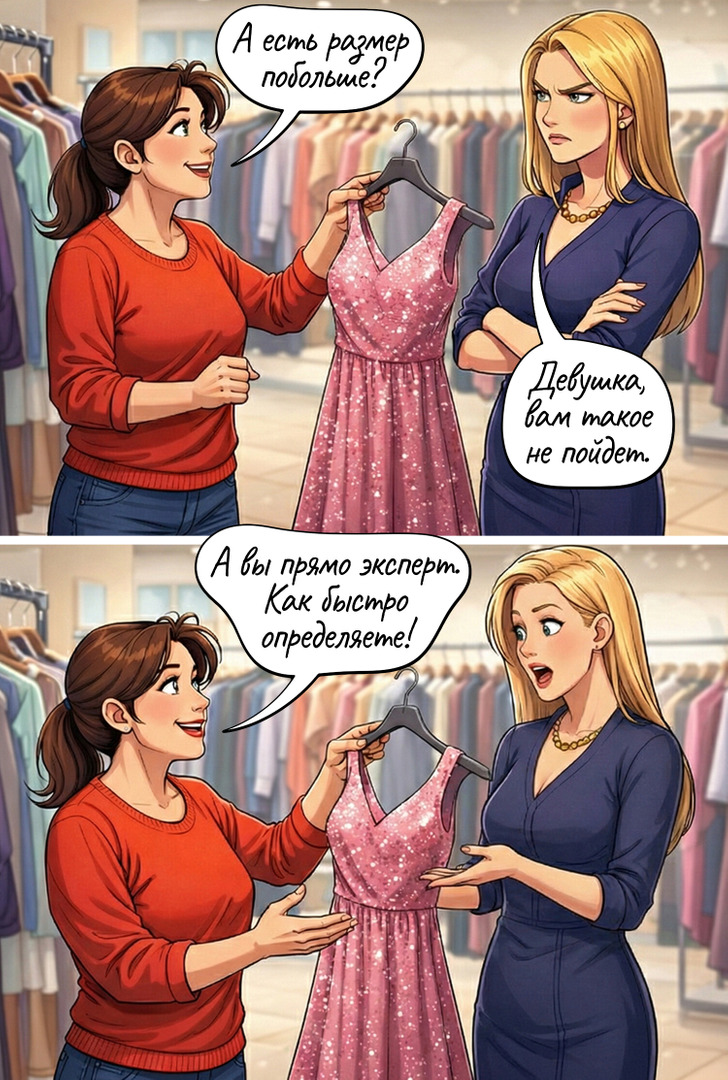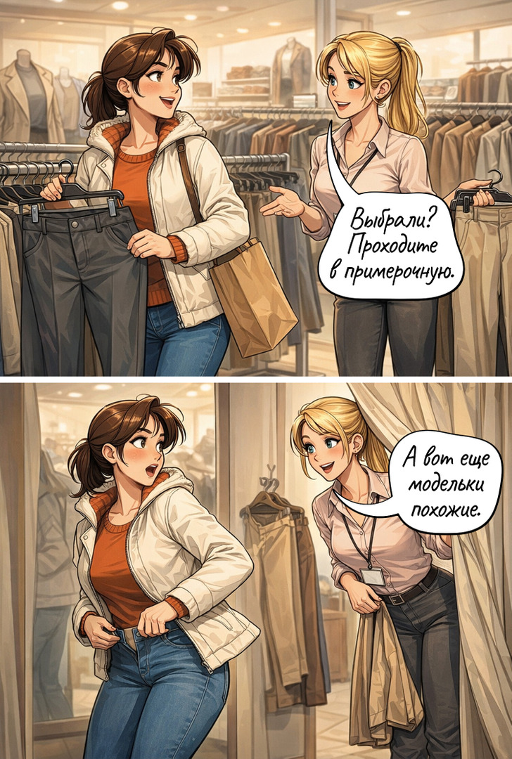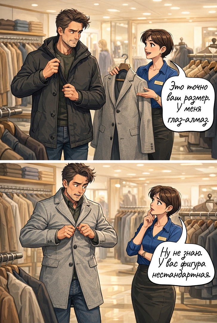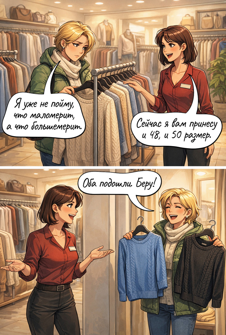 Так легко запутаться в современных размерах одежды. Но опытный продавец всегда поспешит на помощь