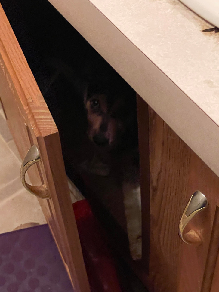«Пошел в туалет, испугался, потому что не мог найти щенка. Потом я заметил, что дверца шкафчика слегка приоткрыта»