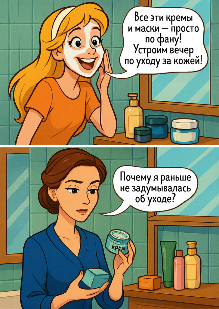 7. А вот уход за кожей... Проходит через величайшую эволюцию. От веселого эксперимента до серьезной научной миссии.