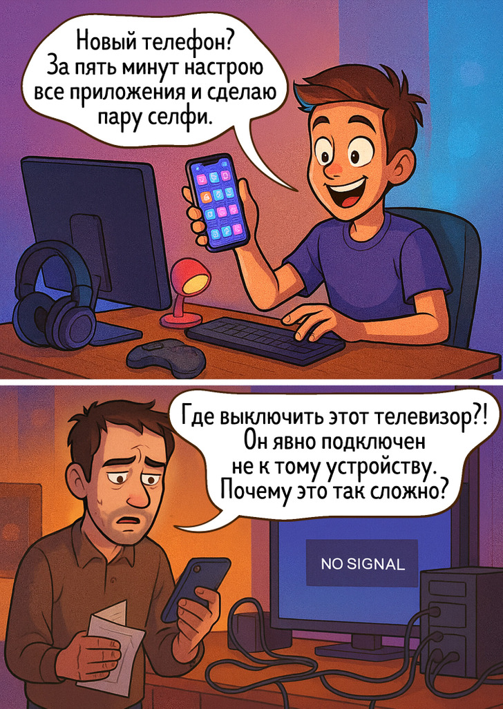 1. Мы в 16 лет думаем, что новый гаджет настраивается сам за минуту. А в 35 любая новая техника — это квест, требующий тщательного прочтения инструкции