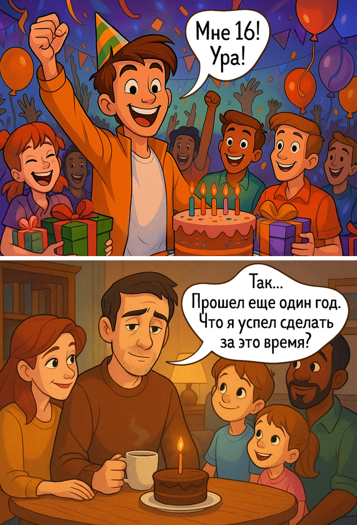 И вот, спустя 19 лет, мы понимаем, что взросление — это не только о том, чтобы стать старше, но и о том, чтобы научиться смеяться над собой, принимать перемены и наслаждаться каждым моментом, будь то буря эмоций в 16 или спокойствие в 35. И, возможно, мы все еще не знаем, как правильно приготовить ужин или выбрать крем от морщин, но точно знаем одно: главное — быть собой, независимо от возраста!