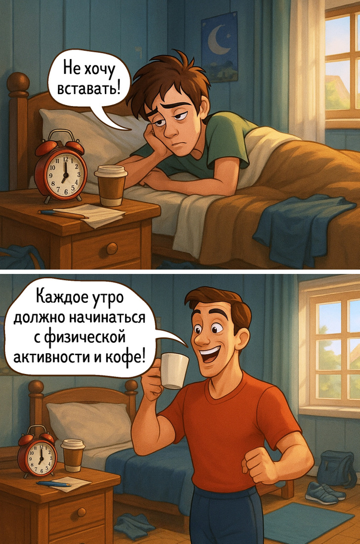 2. Мы в 16 лет думаем, что утро — это время, когда можно позволить себе полениться и не вставать. А в 35 утро — это жесткое расписание, начинающееся со спорта, чтобы запустить организм