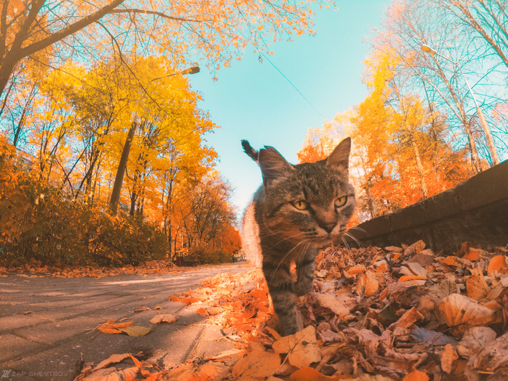 «Просто кот, который спал в листьях. Я думал, тихонько сфоткаю, но не прокатило и хитрый нос сразу начал тянуться к камере, чтобы унюхать, есть ли еда»