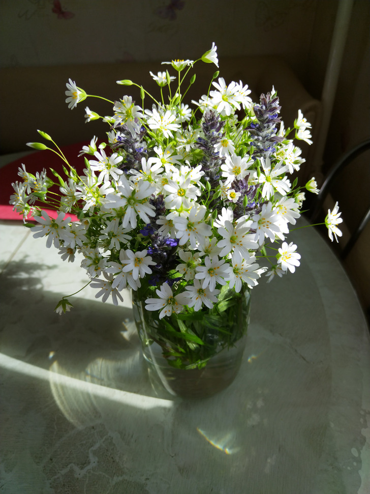 «А мне вчера дочь подарила вот такой букетик. Из леса бегом бежала, чтобы не завяли»