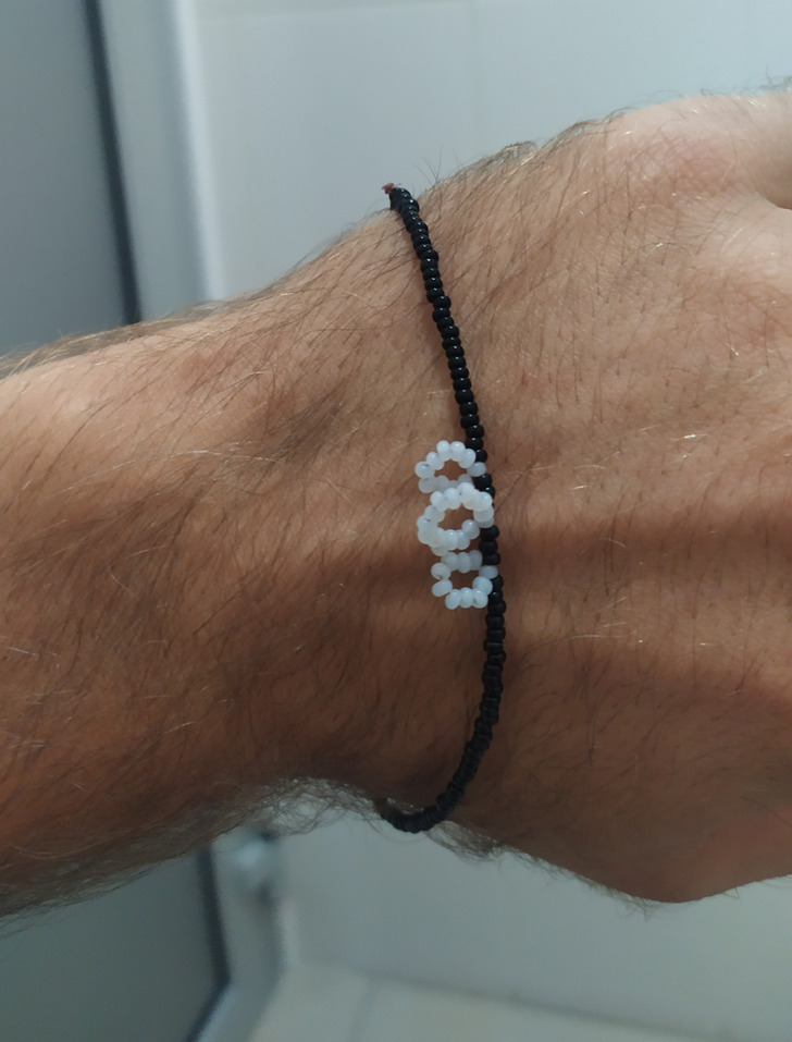 «А мне дочка подарила на ДР браслет. Сама сделала из бисера на леске. Ношу, не снимая: на работе, на соревнованиях, в саду. Полгода полет нормальный»