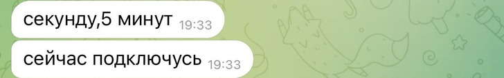 Ответ в 15:40 «Мы обедаем, можно через полчаса»