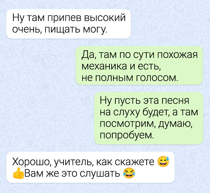 А вот эти люди, хоть и не заняты преподаванием, тоже порой могут похвастаться такими переписками, что хоть режим «Недоступен» включай: