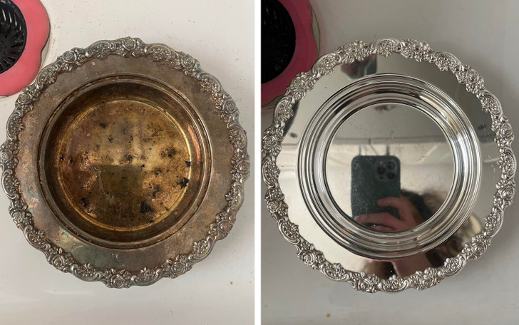 «Мне подарили старинное серебряное блюдо, которое давно не чистили. Убрала всю грязь и отполировала — как новое!»