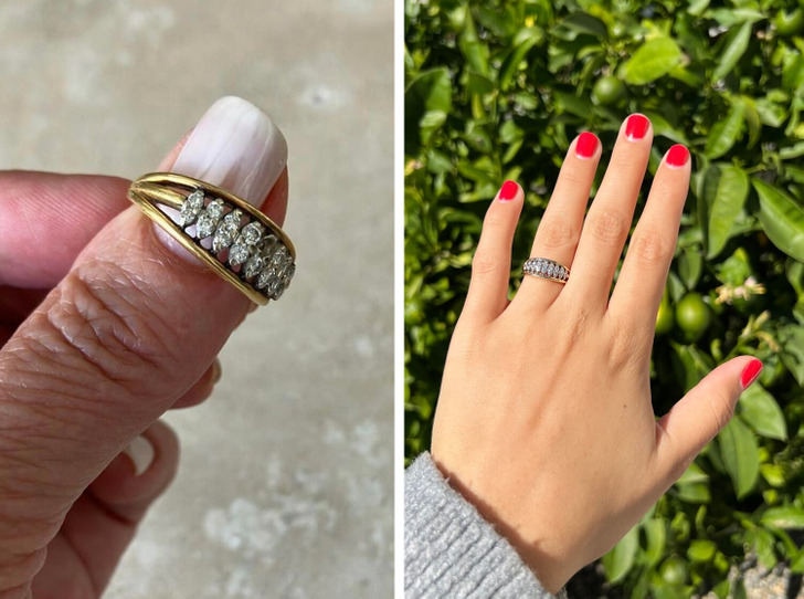«Восстановил кольцо бабушки с утраченным камнем — как новое! Вот так теперь выглядит на руке моей сестры»