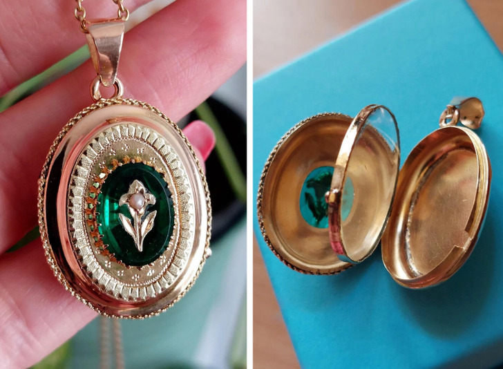 «Кулон моей бабули. С одной стороны есть место для фото, а с другой для духов»