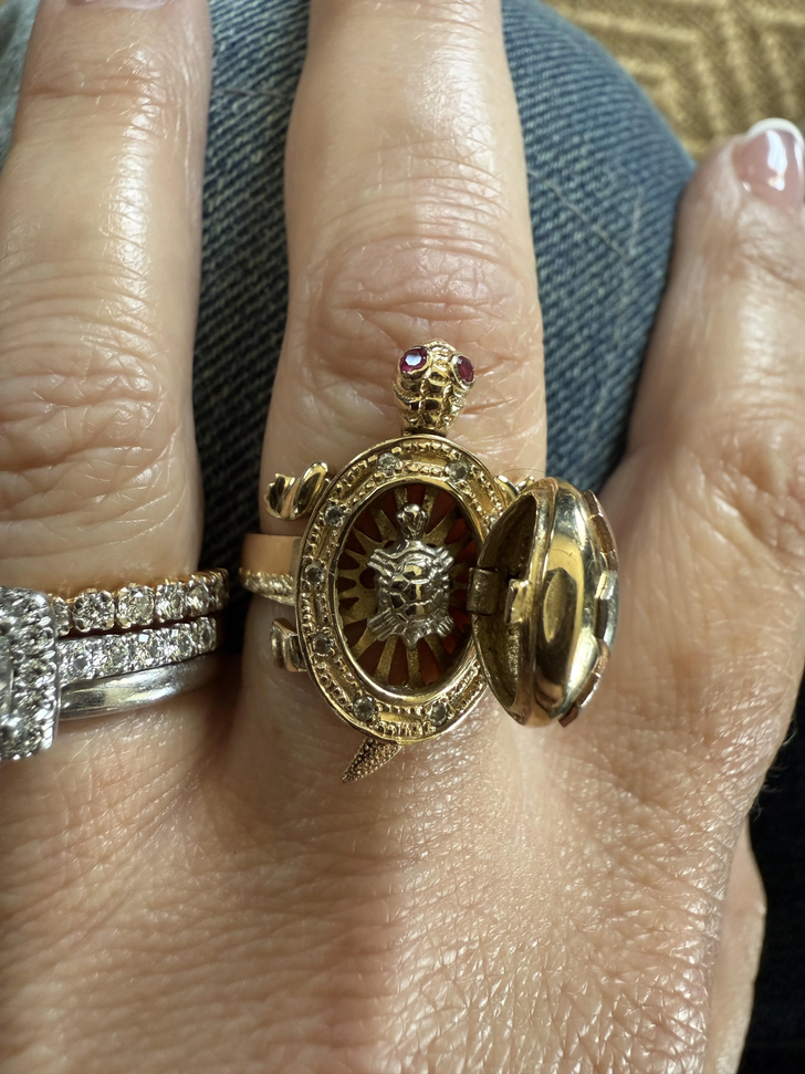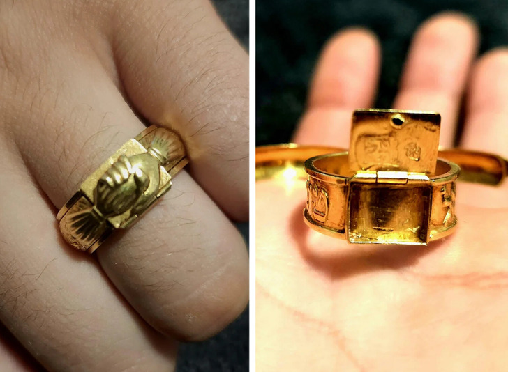 «Купила винтажное кольцо с секретом. А внутри оно оказалось залито чем-то вроде супер-клея, теперь пытаюсь его оттуда достать»