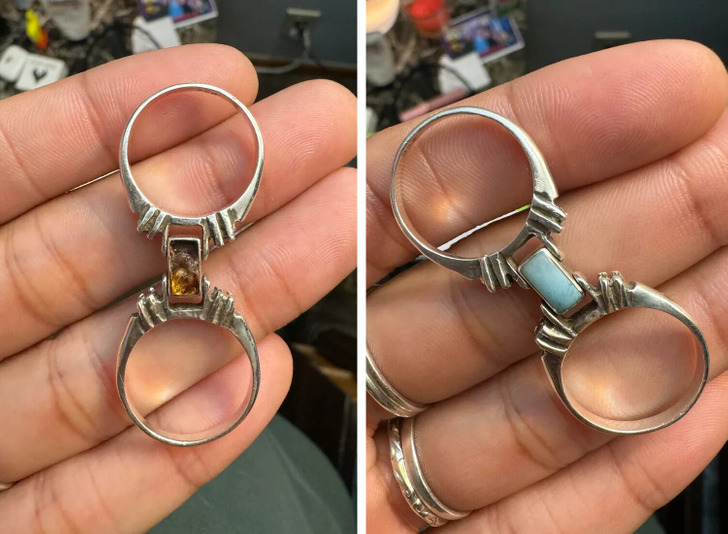 «Только что убиралась в своей комнате и нашла это двухстороннее кольцо. Клянусь, оно не мое! Более того, я в жизни таких не видела»