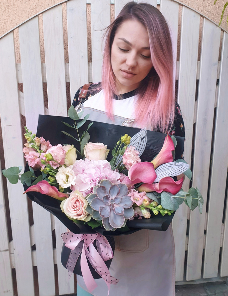 «Не так уж давно стала на путь флориста, до этого была просто продавцом цветов с мечтой. Вот один из моих букетов»