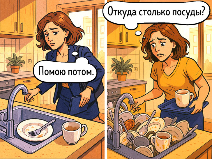 Грязная посуда в раковине будто размножается. Да ты и не припомнишь, откуда столько тарелок