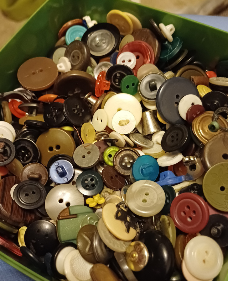 «Наследство от бабушки. Целая коробка с пуговицами! В детстве я любила разбирать их по размерам, количеству дырочек. Могла часами ковыряться»
