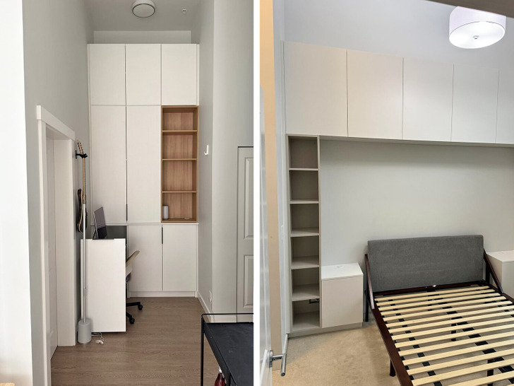 «Вот как я организую пространство в доме и избавляюсь от беспорядка. Я хотел, чтобы моя система хранения вещей хорошо сочеталась с высокими потолками. Установил такую даже в спальне»
