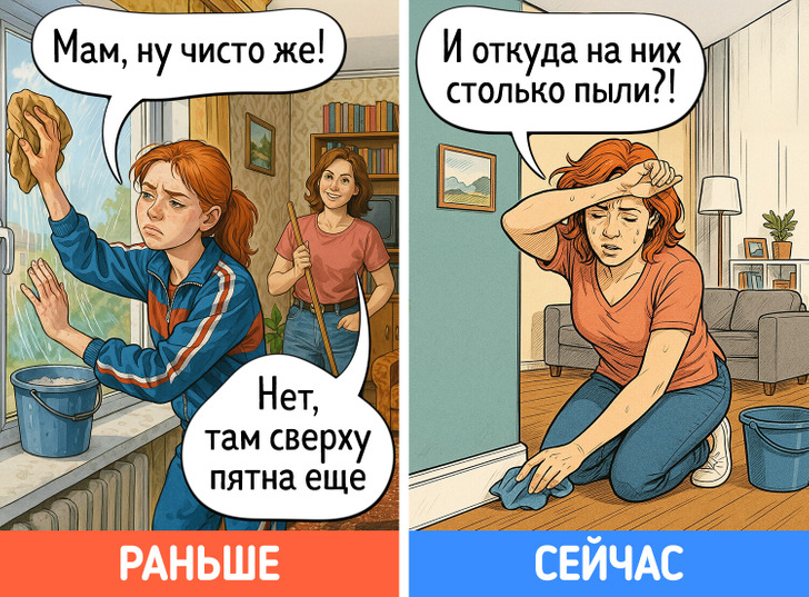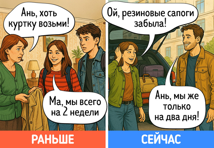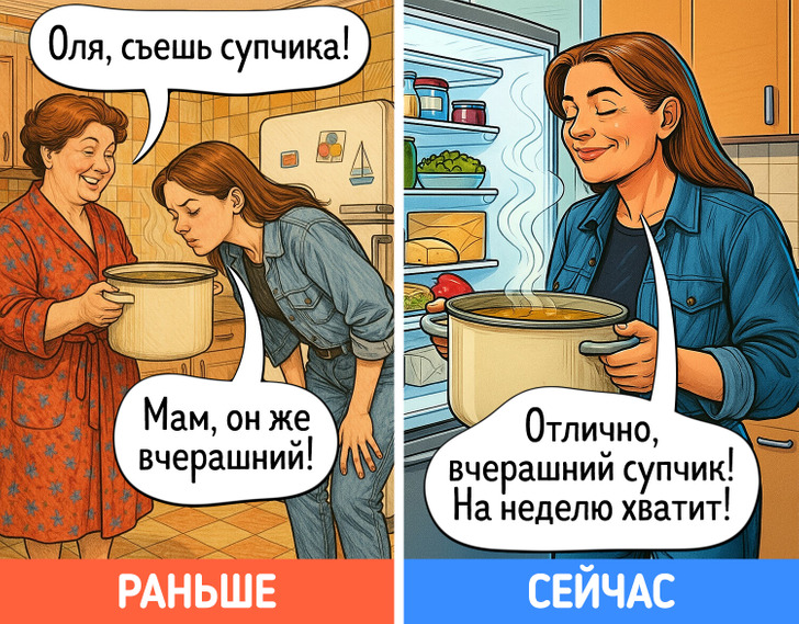 В юности многие идеи, которые старались донести до нас родители, казались сущей ерундой. Однако с годами начинаешь видеть их в новом свете. Дача вдруг становится любимым местом отдыха, на свет извлекаются бабушкины рецепты, а выкинуть старую одежду просто не поднимается рука. Мы попросили нейросеть нарисовать комиксы о том, как меняется наше отношение к родительским причудам после 40 лет.
