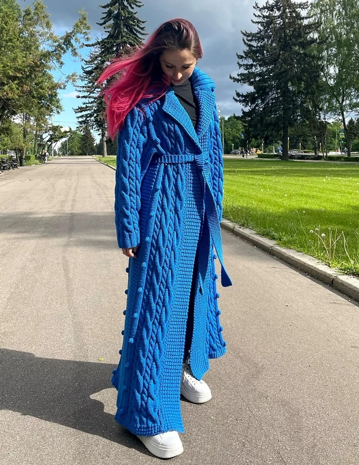 «Моя свекровь — профессионал высочайшего класса в вязании. Она связала это пальто для меня. Цены ему нет! Такое достается только по блату»
