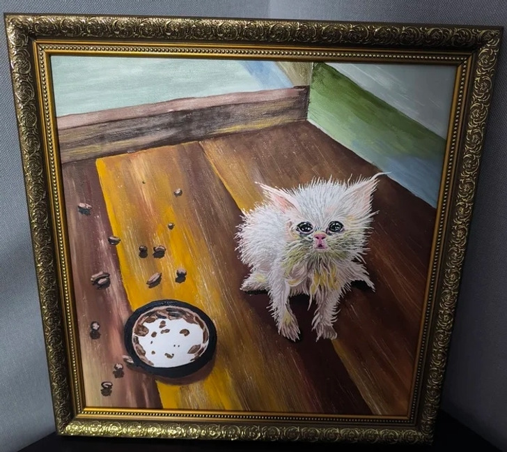 «Дедушка супруги написал картину в подарок нам на годовщину. Мы — фанаты странных котов. Просто хвастаюсь!»