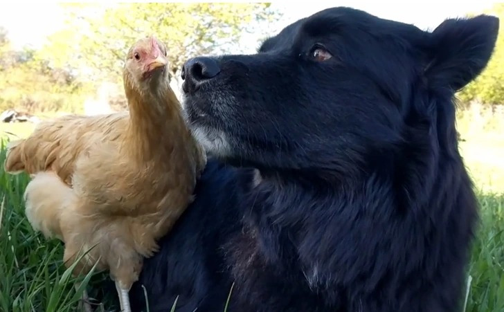 «Моя курица выискивает насекомых в шерсти собаки»
