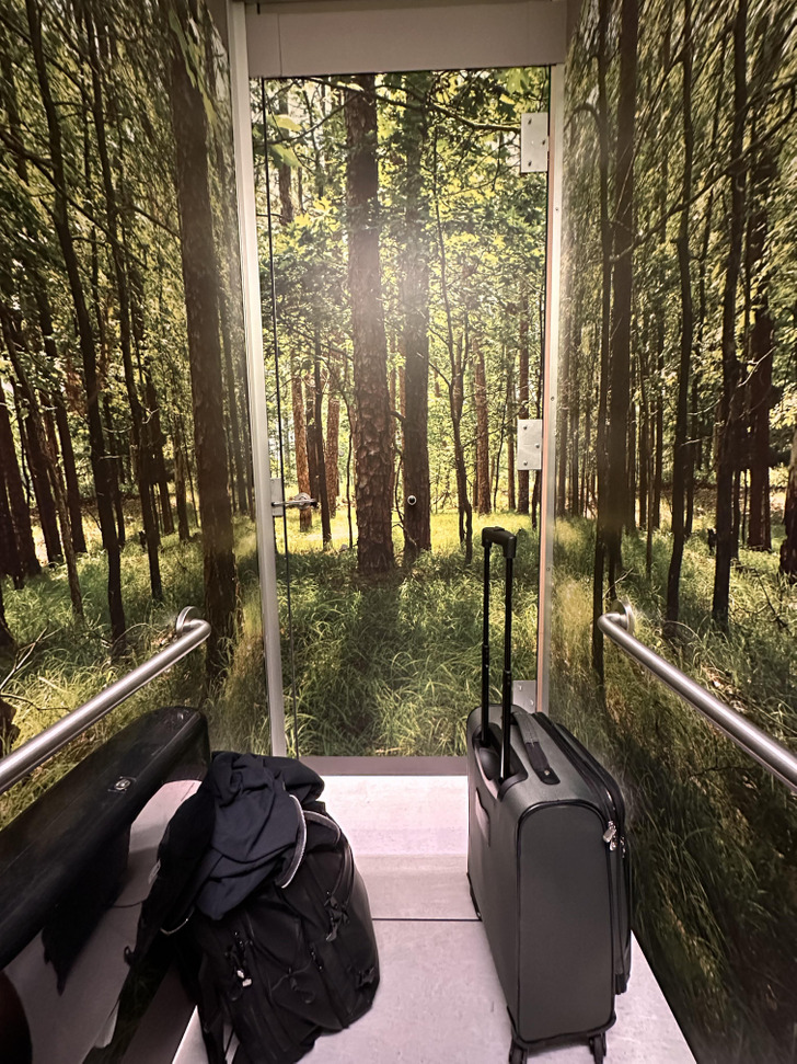 В тропическом аэропорту есть несколько раздевалок для гостей, прибывших из более холодных стран