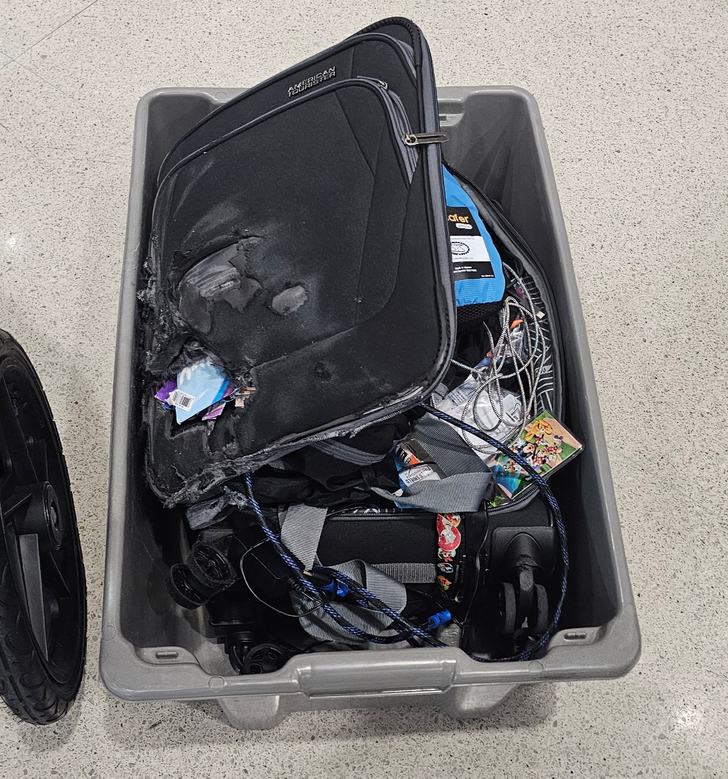 Авиакомпания сказала заполнить форму «неправильно отправленный багаж». А я смотрю на то, что мне вернули и почти уверен, что нужна форма «багаж попал под самолет»