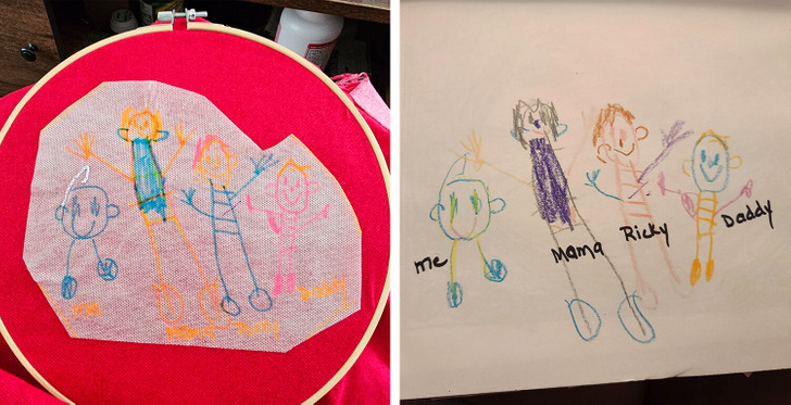 18. «Я вышиваю детский рисунок моего парня на наволочке. Планирую подарить это на Рождество его маме»