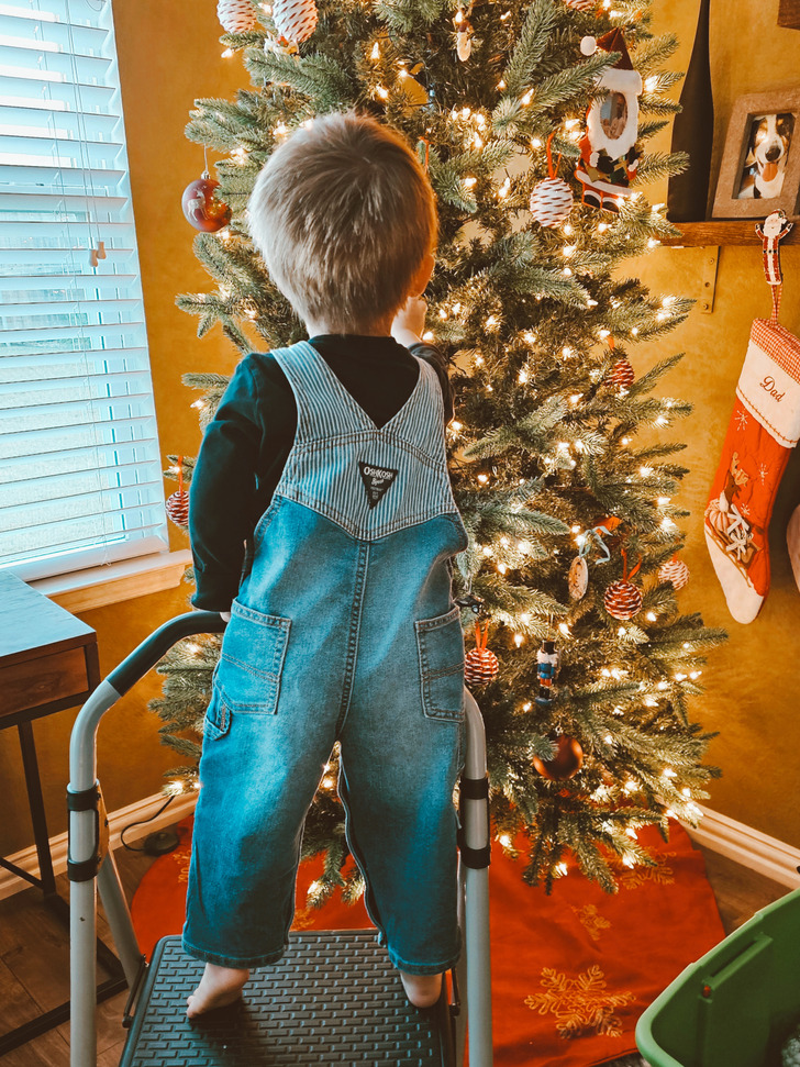 12. «Мой сынок впервые помогает мне с украшением елки»