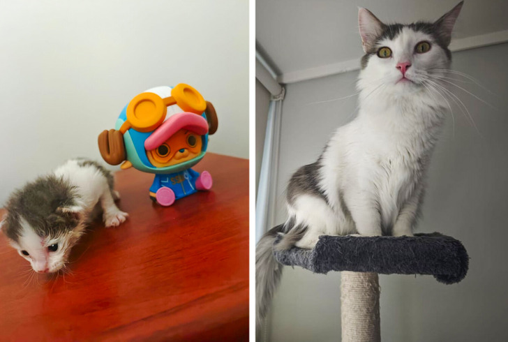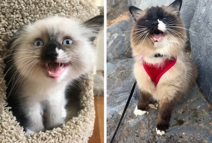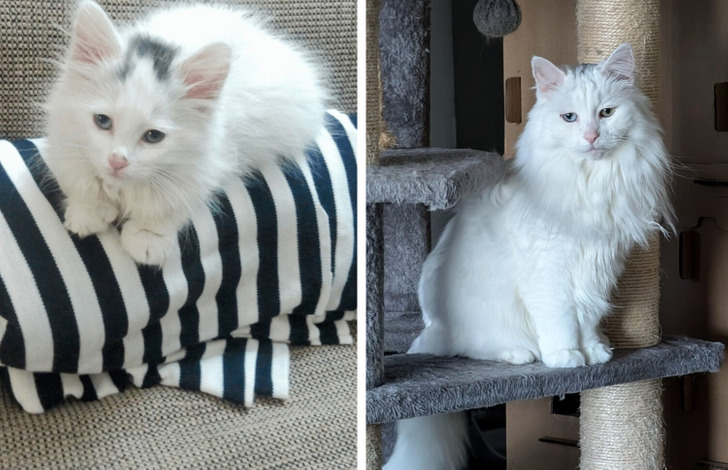 Иногда очень хочется вернуть и продлить те нежные моменты, когда наши питомцы были совсем крошечными и помещались на ладошке. Когда сравниваешь то, какими они были раньше и стали сейчас, невольно изумляешься, потому что разница порой оказывается огромной. Вот взгляните, к примеру, на роковую черную красотку Лею, в шикарной шубке, или на Мартика, который из лохматого комка превратился в роскошного котяру.
