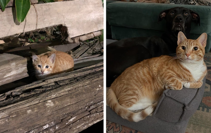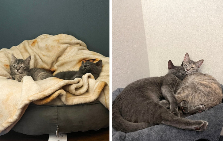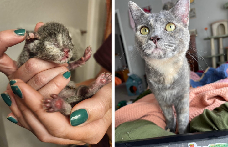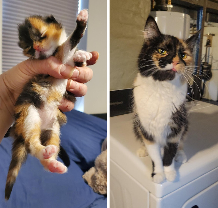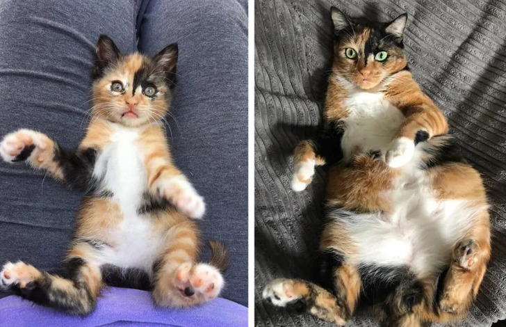 «Твиг (черепаховый котенок) — в день, когда мы его привезли, и сейчас»