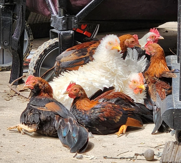 Обычно мы любуемся тем, как на солнышке нежатся коты. А чем куры хуже?