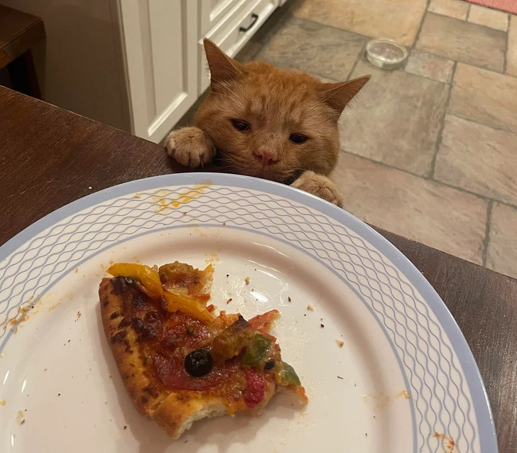 Нет ничего печальнее на свете, чем кот, требующий еду. Этого прохвоста зовут Тим и, кажется, он фанат пиццы