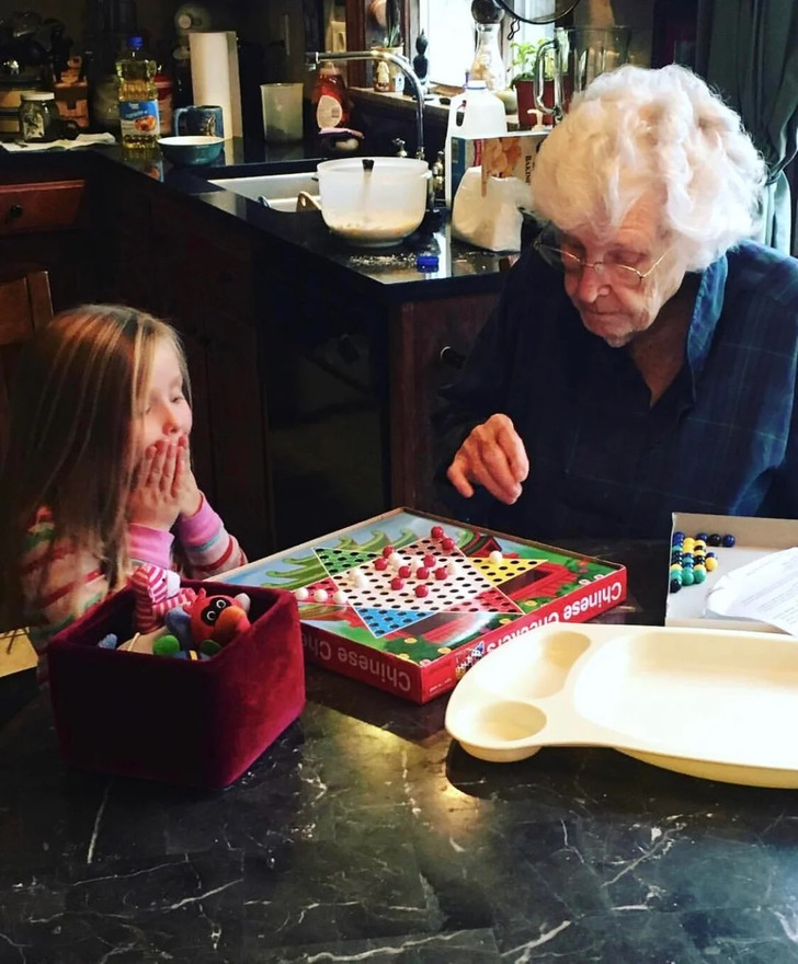 «Итак, моя 98-летняя бабушка учит мою 5-летнюю дочь играть в китайские шашки»