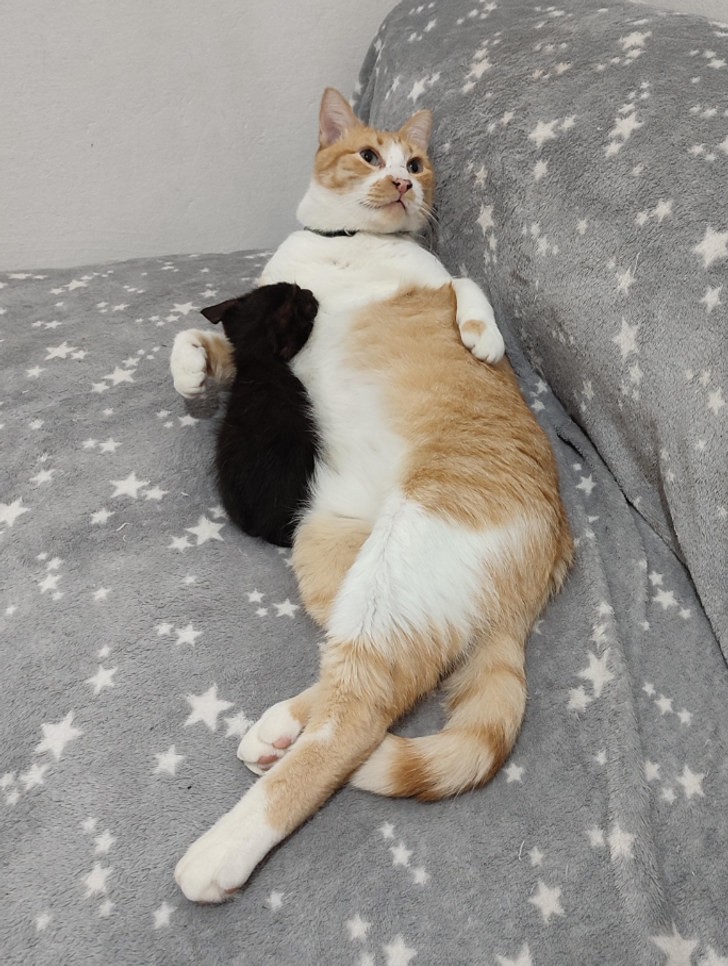 Прямо мой Рыжик-Пыжик, он тоже выкормил-вырастил трёх здоровенных лбов, которые даже не его дети 😹