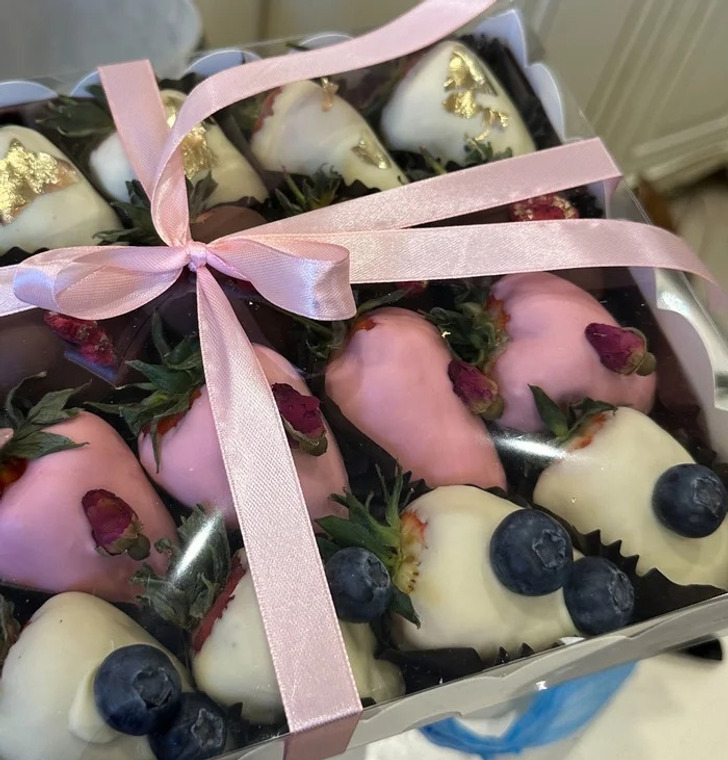 • Решила не морозиться и работать из дома. Слышу — на улице кто-то очень громко разговаривает. Через час умолкли. Наливаю кофе, подхожу к окну и вижу это... Забыли сумку. Минут 20 никто не идет. Думаю, надо пойти проверить. Выхожу. Беру сумку и открываю... Ноутбук торчит. Несу домой... Смотрю содержимое и вижу еще сверток бумаги и пару ручек. А внутри — деньги. Сначала я написала в группу района. Реакция была просто нулевая. Начала искать инфо. Нашла в ноутбуке фото владельца, пробила через поиск по картинкам и нашла его профиль в соцсетях. По одной фотке нашла похожего. Владислав приехал раньше времени. Он спросил, что я люблю, какие цветы? Я сказала, что люблю клубнику в шоколаде. А вечером он прислал мне вот такой приятный сюрприз.