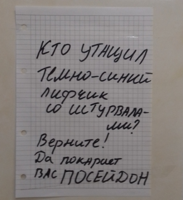 - Недавно молодой человек ходил с ребятами из института к ним в общагу. На входе он увидел табличку с надписью: «Запрещено кататься с лестниц на тазиках!» Мы посмеялись: «Да кому придет в голову кататься на тазиках с лестниц?» Позже разговор зашел с его отцом, который тоже учился в этом институте и жил в общежитии. И тогда мы поняли, почему объявление актуально. Однажды прорвало трубу на верхнем этаже, и он с друзьями взял в хозяйственной комнате металлические тазики. Они устроили настоящий аквапарк прямо на лестницах — людей было куча! Вот почему предупреждение до сих пор висит, и, думаю, именно оно каждый год вдохновляет студентов на новые шалости. © Палата № 6 / VK