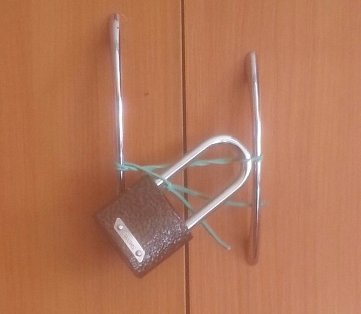 «Живу в общежитии. Сосед позаботился о безопасности своих вещей перед поездкой. Успешный парень!»