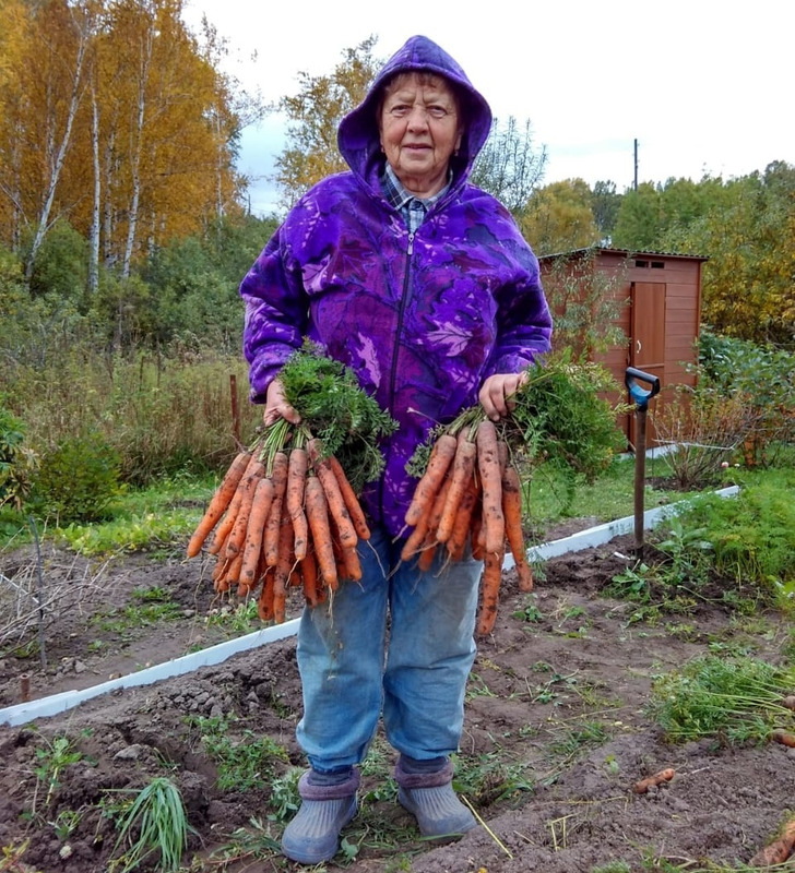 «Моей бабушке 82 года, в руках у нее собственноручно выращенная на огороде морковка. Это самая лучшая морковка, которую я пробовала!»