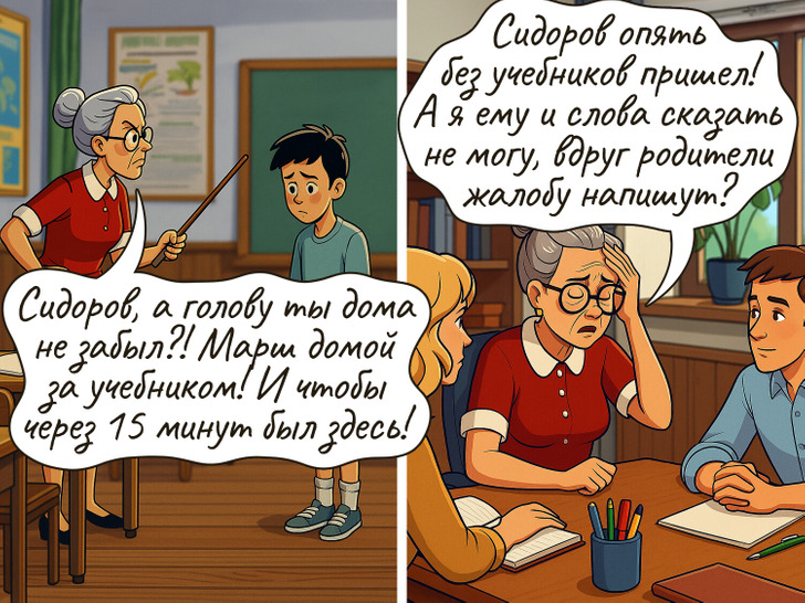 1. Учителя с нами не особенно церемонились, а от фразы «Голову ты дома не забыл?» Теперь же учителя боятся наговорить лишнего