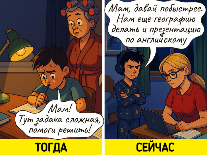 18. Раньше с домашкой справлялись сами, теперь над каждым заданием работает вся семья: мама, папа, и, конечно, всемогущий интернет