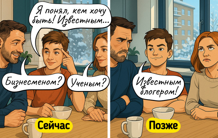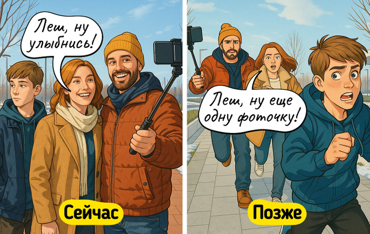 Когда чадо достигает подросткового возраста, многим родителям кажется, что их милого ребенка кто-то подменил. Возможно, на его месте теперь вообще пришелец с другой планеты. Настроение отпрыска может меняться несколько раз в день, равно как и его вкусы и планы. В результате это приводит к неожиданным и забавным ситуациям. Мы попросили нейросеть нарисовать шутливые комиксы о том, каково это — быть родителем подростка.