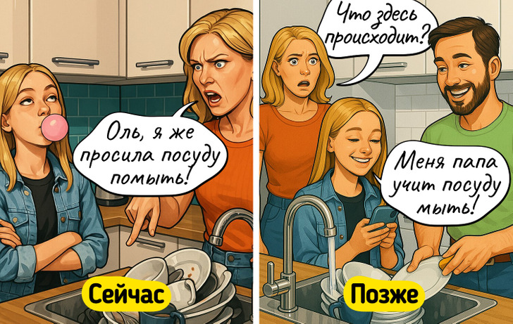 Возможно, подросшие дети пока не слишком хорошо справляются с домашними делами. Зато знают, как ловко утихомирить родителей