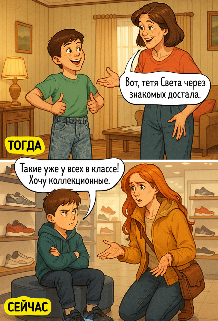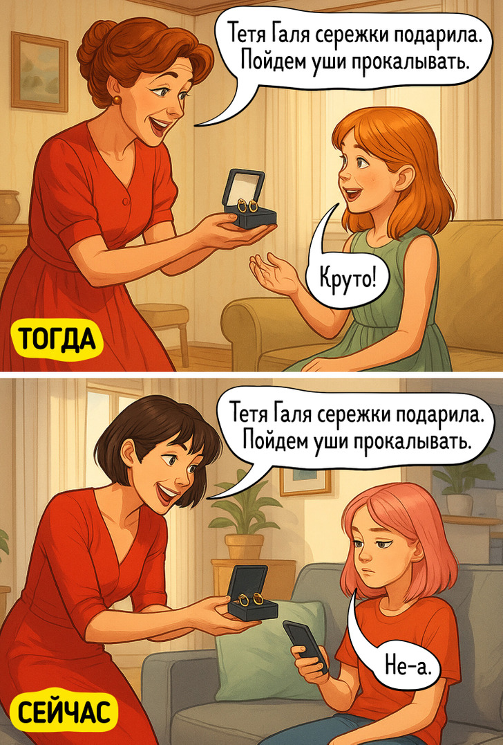 Порой кажется, что современные дети уже совсем не такие как мы, их родители. Они уже вряд ли поймут, зачем мы втихую таскали варенье из холодильника и почему так радовались обычным джинсам-варенкам. Но у них тоже есть свои милые странности и заморочки. Сравним? Тогда скорее начинайте листать комиксы.