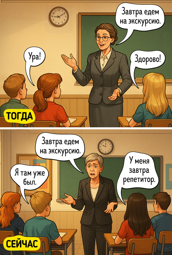 Зато учителям порой приходится непросто с нынешними плотно занятыми и перекормленными впечатлениями детьми