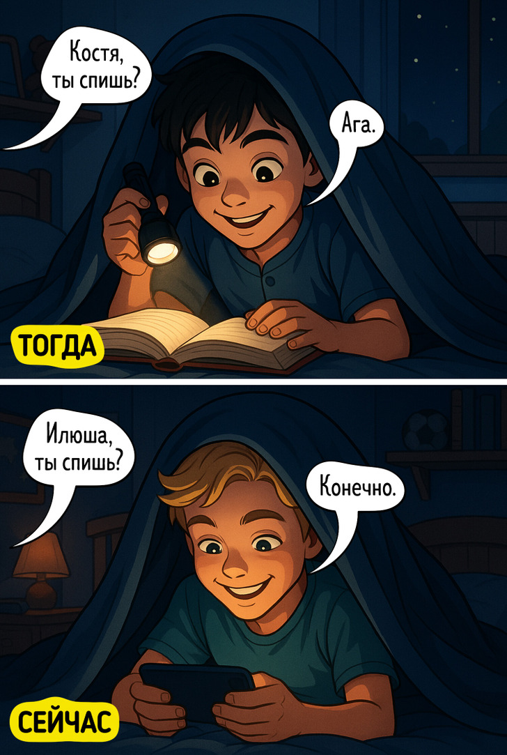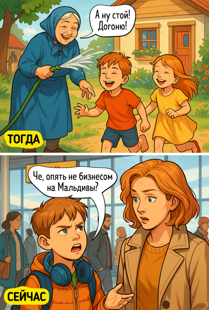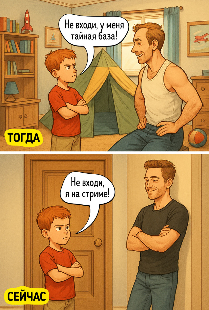 18 комиксов о таком разном, но неизменно веселом детстве у нас и у наших сыновей и дочек