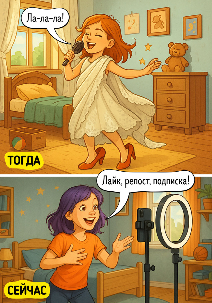 Раньше мы пели в расческу и представляли себя на сцене, а теперь любой ребенок при желании может стать звездой, не выходя из своей комнаты