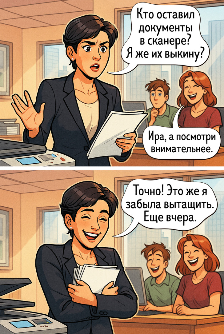 Говорят, что рабочий коллектив — это вторая семья. Здесь так же ссорятся и мирятся, отмечают праздники за накрытым столом и периодически получают нагоняи от тех, кто старше. Наши комиксы как раз о буднях этой «семейки», странных привычках коллег и маленьких радостях, без которых офисная жизнь была бы гораздо скучнее.