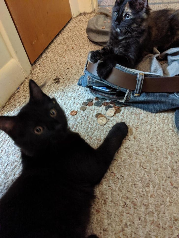 Мои оболтусы - кот Сеня (серый) и шотландская вислоухая Марфа. Кот немножко сумасшедший - жрёт пластиковые тапки, текстильные резинки для волос, может в клочья изорвать нечаянно оставленный пакет. Срёт исключительно под входной дверью))) Милашка в общем)) Ну а Марфа трусишка)) Любит батон, ни разу в жизни не промахнулась мимо лотка. Один раз забыла после мытья поставить лоток на место, господи, что было! Подошла ко мне и начала орать диким голосом, потом до меня дошло, что кошка хочет писять))))
